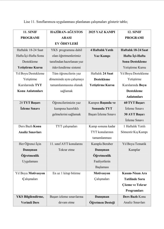 11'den 12. Sınıfa Geçen Öğrencilerimiz İçin Yıllık Üniversite Hazırlık Programı
